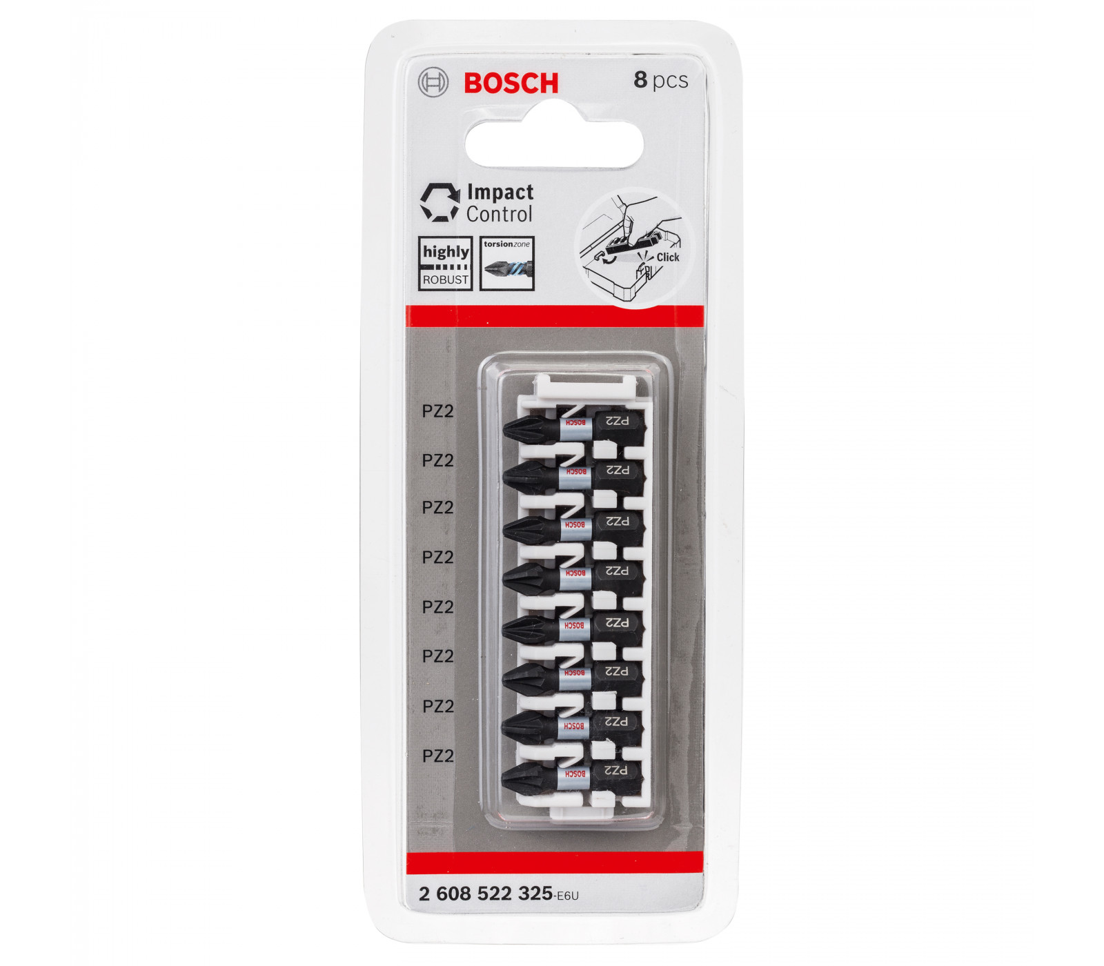 Bosch sukimo antgalių rinkinys Impact Control, 8 vnt, PZ2, 25 mm