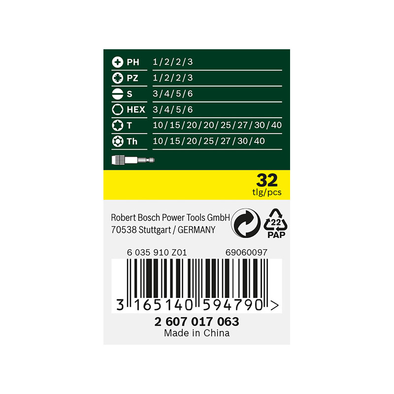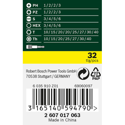 Bosch sukimo antgalių rinkinys plastikinėje dėžutėje, 32 vnt. (2607017063)