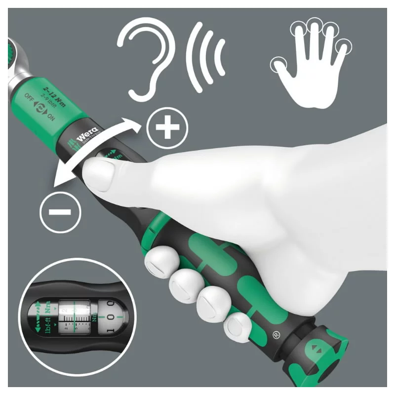 Dinamometrinis raktas su 10 vnt antgalių komplektu Wera 05075830001 (2 - 12 Nm)