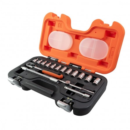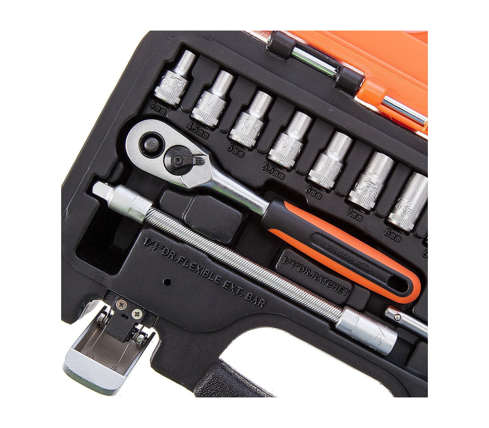 "12 x 1/4" šešiakampės galvutės 4-13 mm1 x 1/4" terkšlė, greitas atleidimas, 60 dantų / 6 ° veikimo kampas1 x 1/4" slankioji T formos jungtis, 100 mm / 4"1 x 1/4" prailginimo jungtis, 75 mm / 3""1 x 1/4" lanksti prailginimo jungtis, 150 mm / 6".
