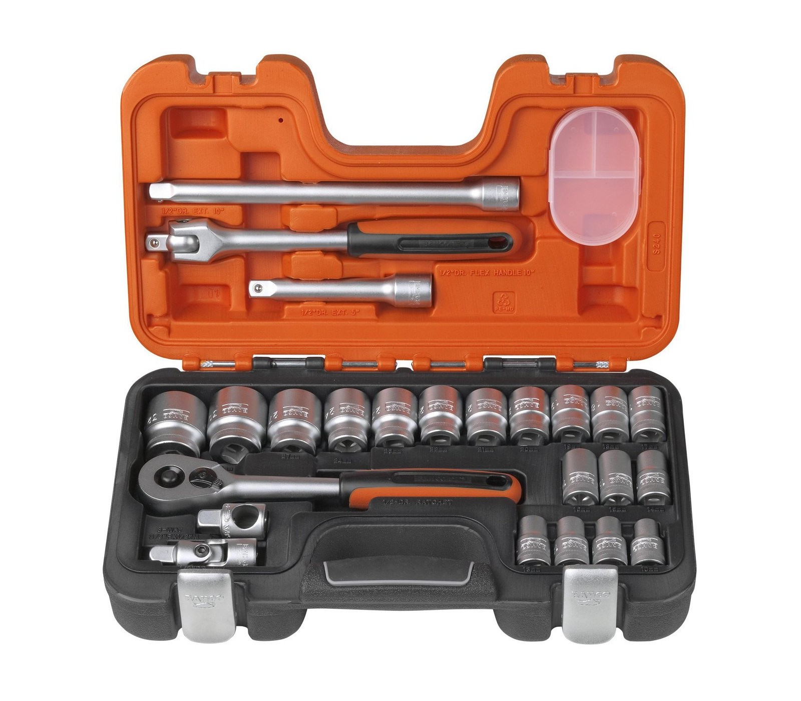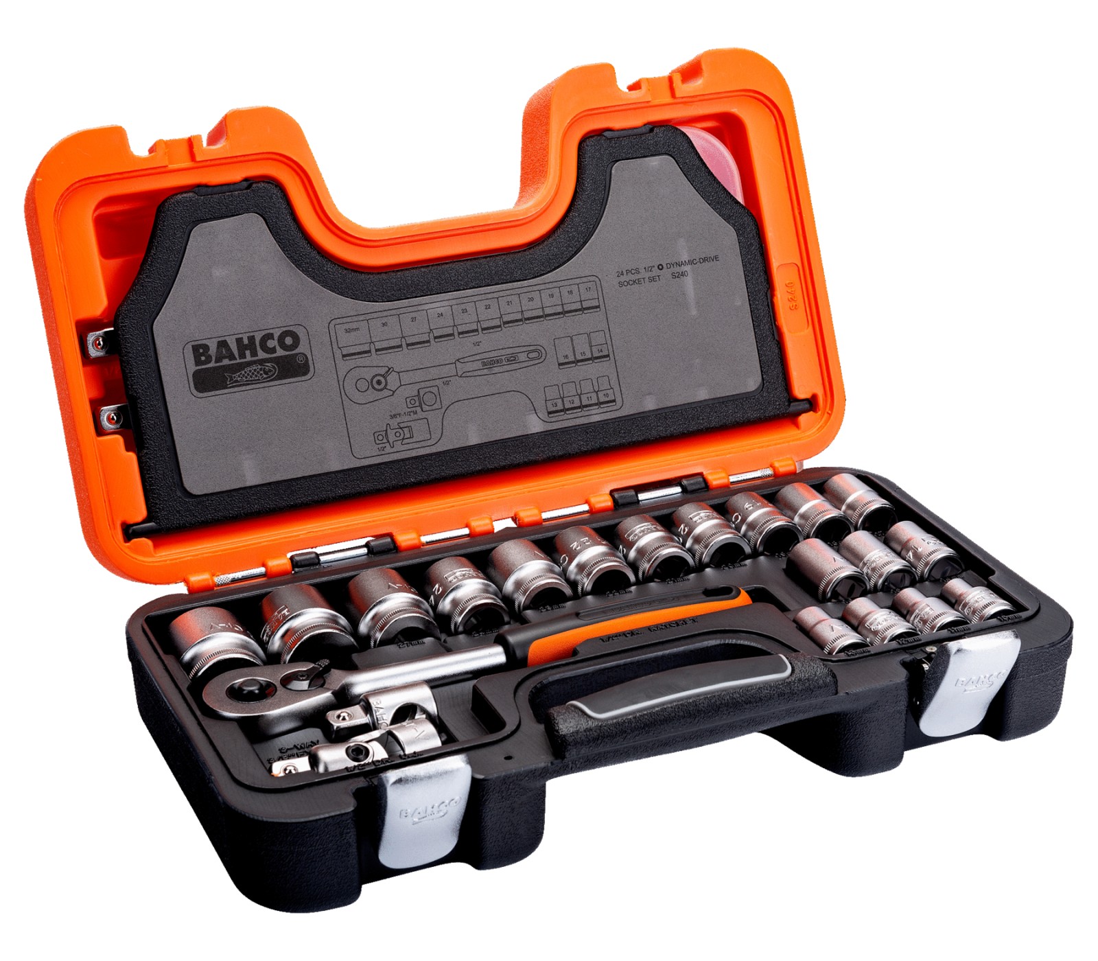 Galvučių ir terkšlės rinkinys Bahco (S240), 1/2", 24 vnt. yra universali priemonė, idealiai tinkanti tiek profesionaliems, tiek mėgėjams. Rinkinys pasižymi aukšta kokybe, o galvutės ir terkšlės leis lengvai ir efektyviai atlikti įvairius darbus.