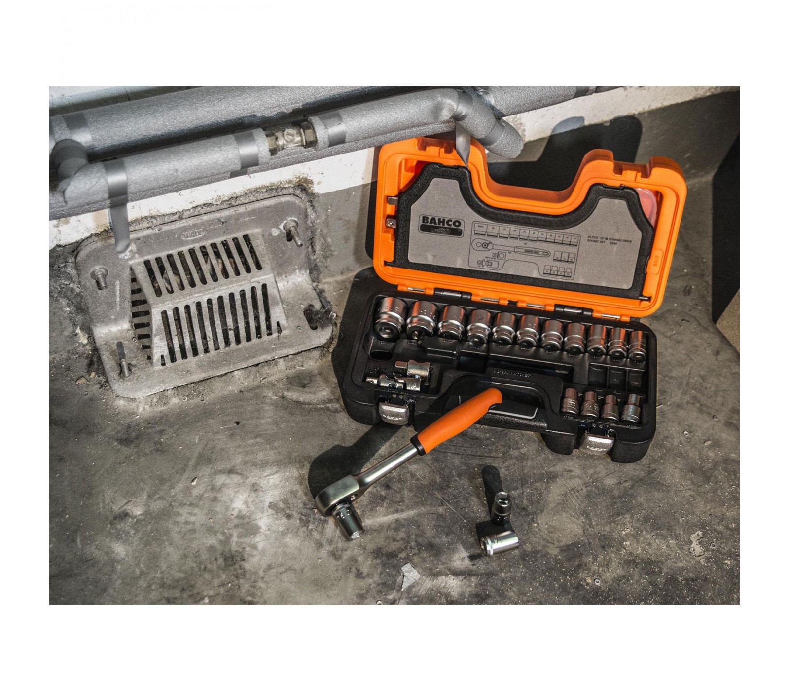 Galvučių ir terkšlės rinkinys Bahco (S240), 1/2", 24 vnt