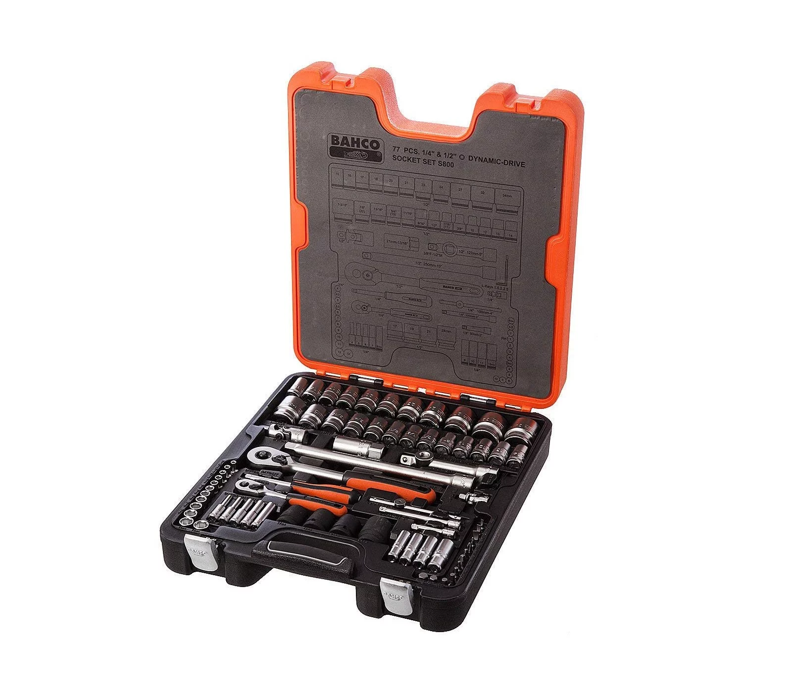 Galvučių ir terkšlės rinkinys Bahco (S800), 1/2", 1/4", 77 vnt