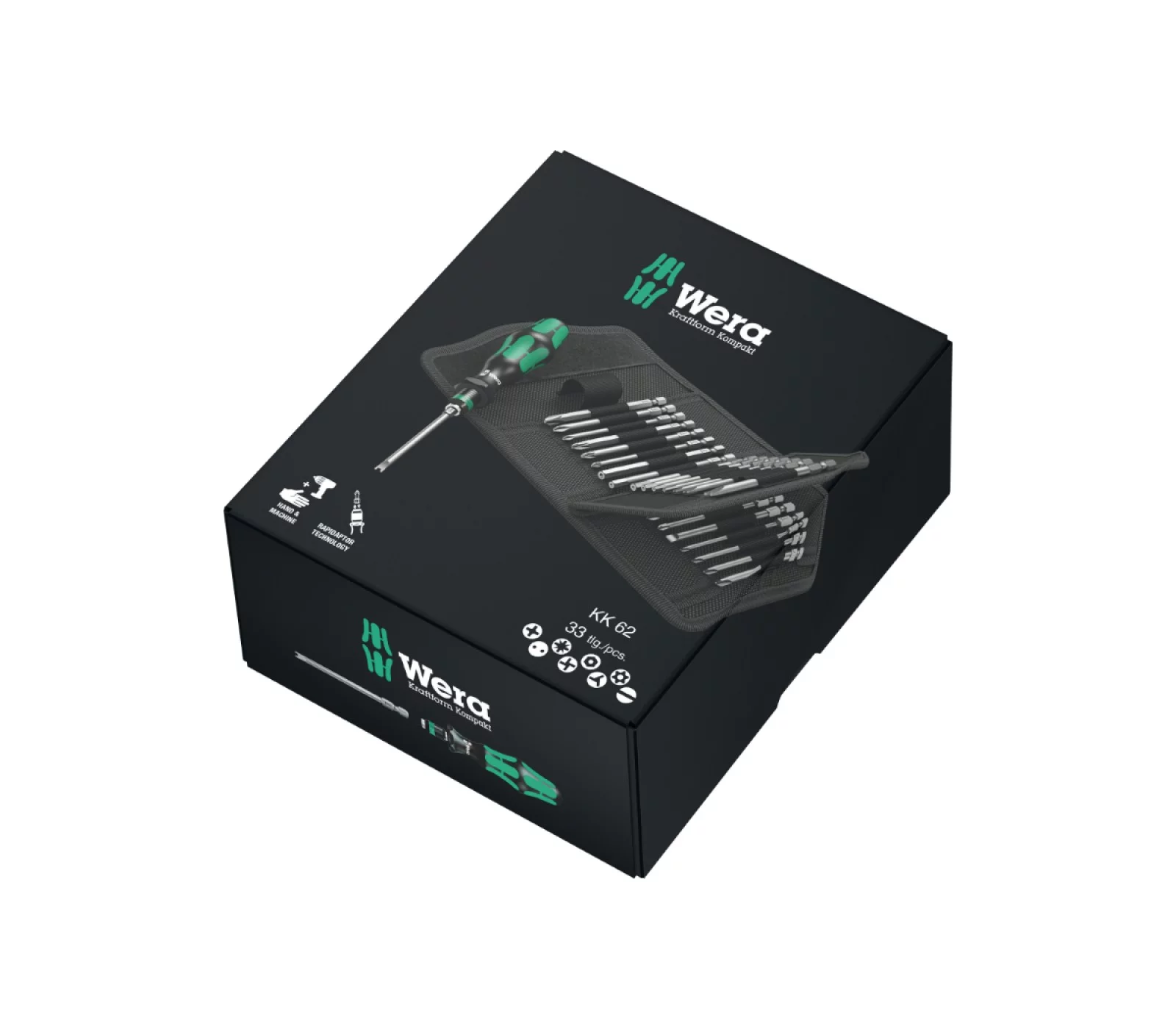 Wera atsuktuvo ir galvučių rinkinys Kraftform Kompakt 62 yra universalus ir praktiškas įrankis, tai puikus pasirinkimas tiek profesionalams, tiek namų meistrams. Rinkinys turi 33 vnt. priedų, kurie padeda atlikti įvairius remonto darbus lengvai ir efektyviai. Dauguma vartotojų giria šio rinkinio patogumą ir ergonomišką dizainą.