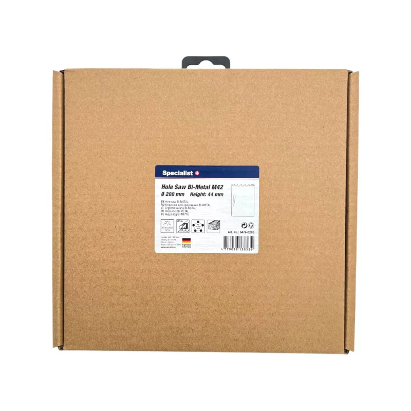 Bi-Metal HSS-Co(8%) ypatingai ilgaamžės ir greitos gręžimo karūnos, karūnos gylis - 56 mm. • Puikiai tinka gręžti: Juodą metalą, spalvotus metalus, nerūdijantį plieną, minkštą medieną, medieną su vinimis, laminatą, Plastiką (PVC, PE, PP, PS, PA), Stiklo pluoštu sustiprinta plastikinę plokštę, Akrilinį stiklą, Izoliacinę plokštę, putplasčio plokštę, Gipso kartono plokštę • Galima gręžti: Statybinį plieną, Ketu, OSB plokštė, Kietmedį, MDF plokštę, Terasos medieną, Multiplex plokštę, HDF plokštę, Parketą • Suprojektuota ir patobulinta Vokietijoje