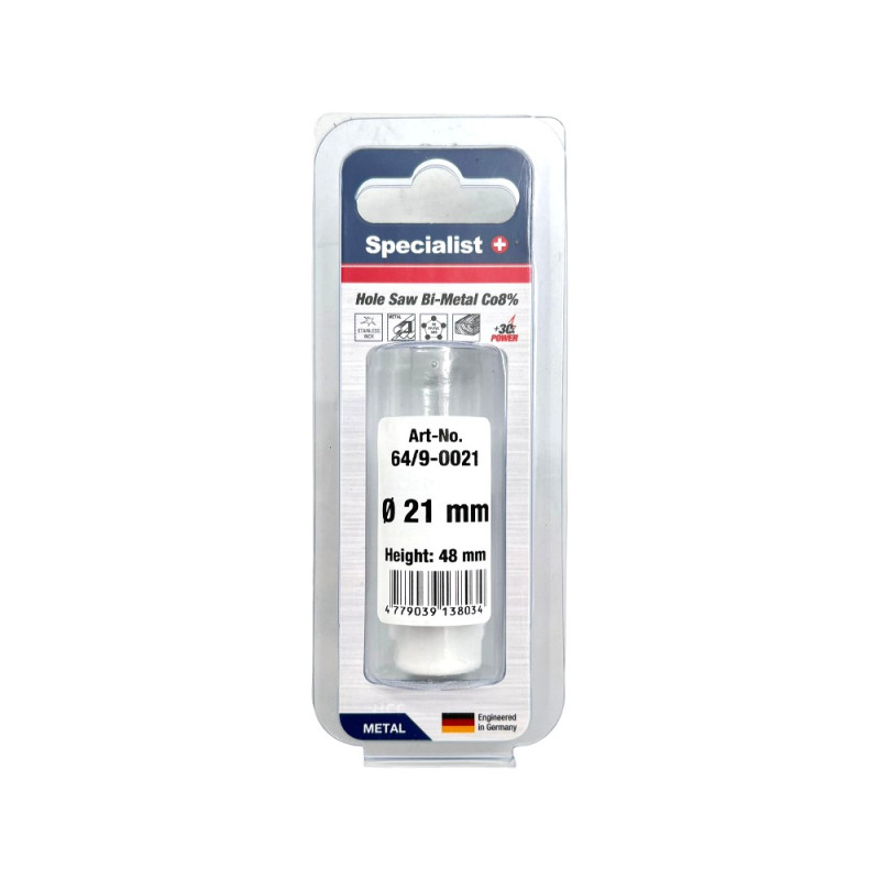 Karūna SPECIALIST+ Bi-Metal 21 mm yra aukštos kokybės gręžimo įrankis, sukurtas iš Bi-Metal HSS-Co(8%) medžiagos, kuri užtikrina ilgaamžiškumą ir efektyvumą gręžiant įvairias medžiagas. Ši karūna pasižymi 48 mm gyliu ir yra puikiai pritaikyta juodo metalo, spalvotų metalų, nerūdijančio plieno, minkštos medienos, ir kitų medžiagų gręžimui, todėl yra idealus pasirinkimas tiek profesionalams, tiek mėgėjams.
