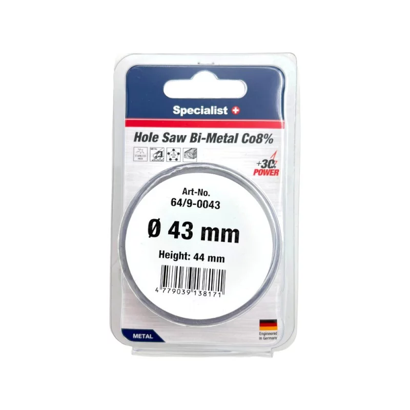Karūna SPECIALIST+ Bi-Metal 43 mm yra inovatyvi gręžimo karūna, kurios pjovimo gylis siekia 40 mm. Ji puikiai tinka dirbti su metaliniais, plastikų, gipso kartono ir izoliaciniais paviršiais. Ši priemonė žymiai palengvina gręžimo procesus, leidžiant jums greitai ir efektyviai kirpti įvairias medžiagas. Karūna yra sukurta Vokietijoje, užtikrinant aukštą kokybę ir patikimumą.