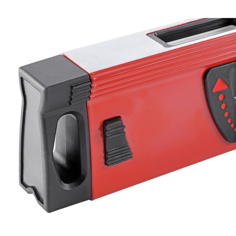 Akutės: • Paklaida tik 0,5 mm/m. Forma ir konstrukcija: • Ypač kompaktiškas. • Lengvas aliumininis profilis. • Guminiai antgaliai, puikiai sugeriantys smūgius. Įrankis naudojamas: • Dailidės darbams. • Statybos darbams.