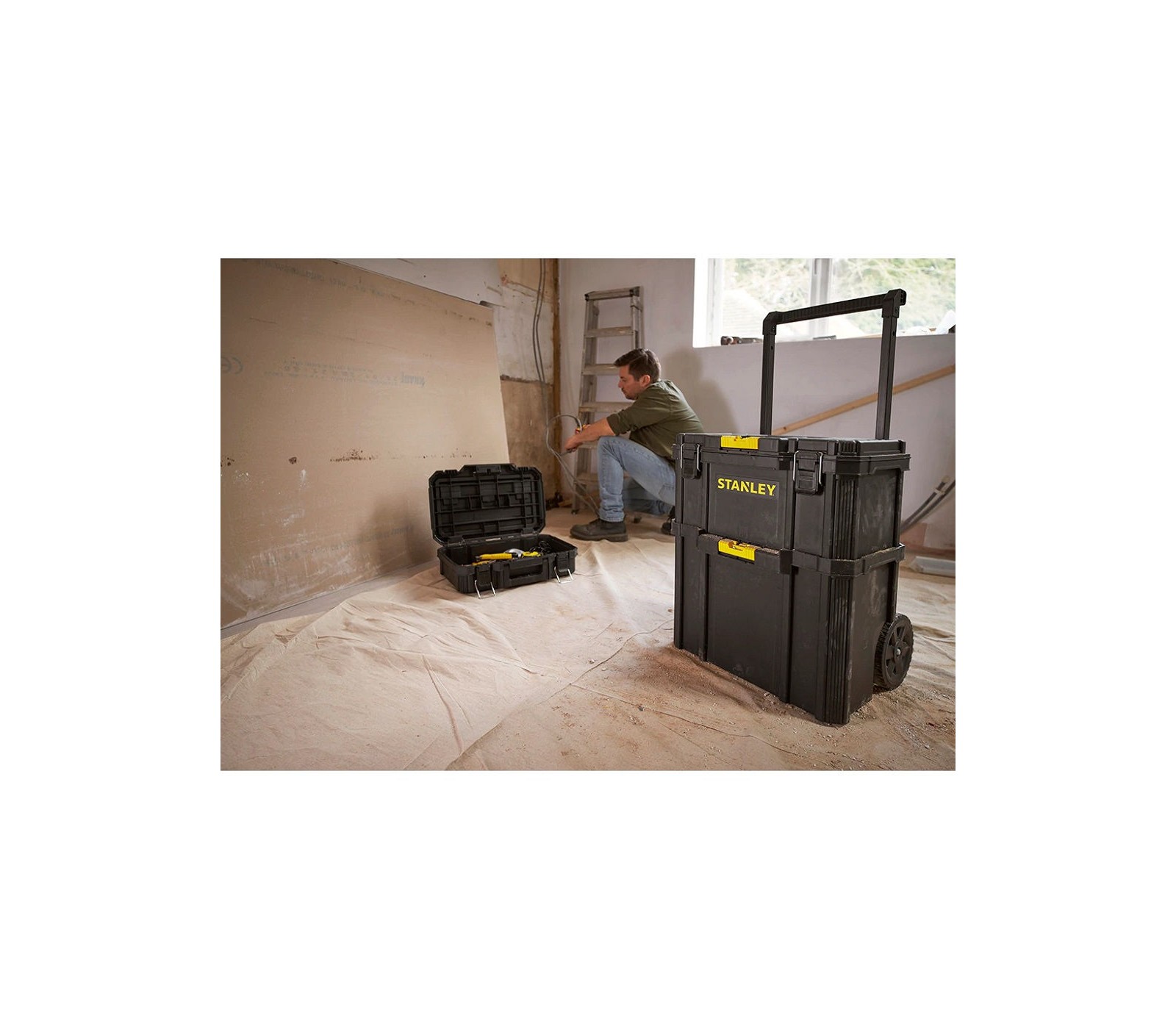 - Įrankių dėžės, krepšiai, darbastaliai