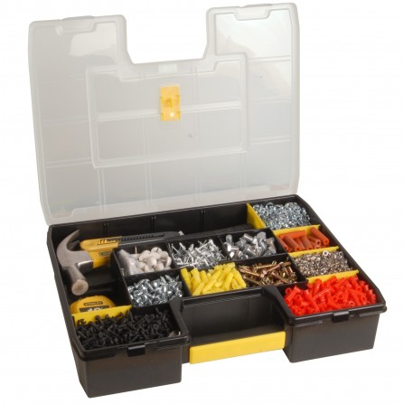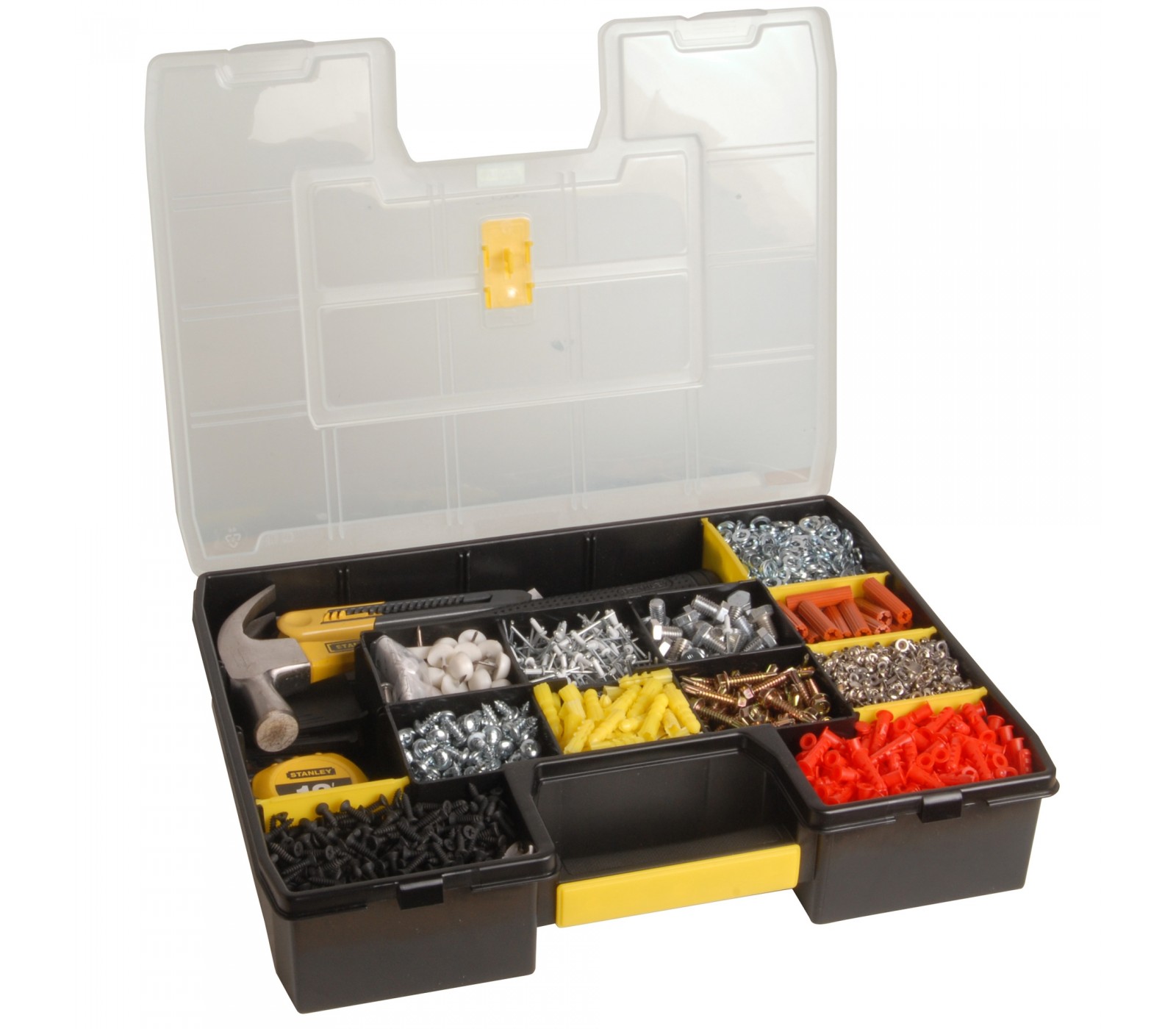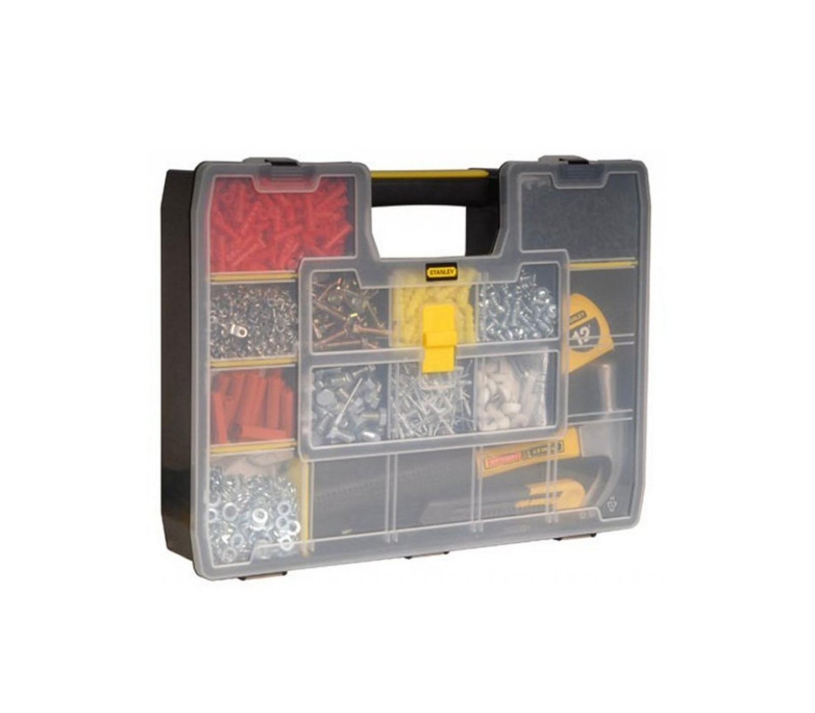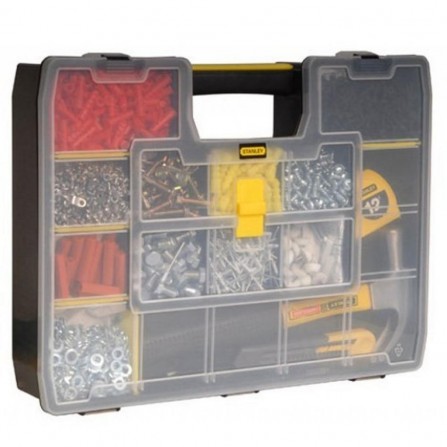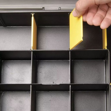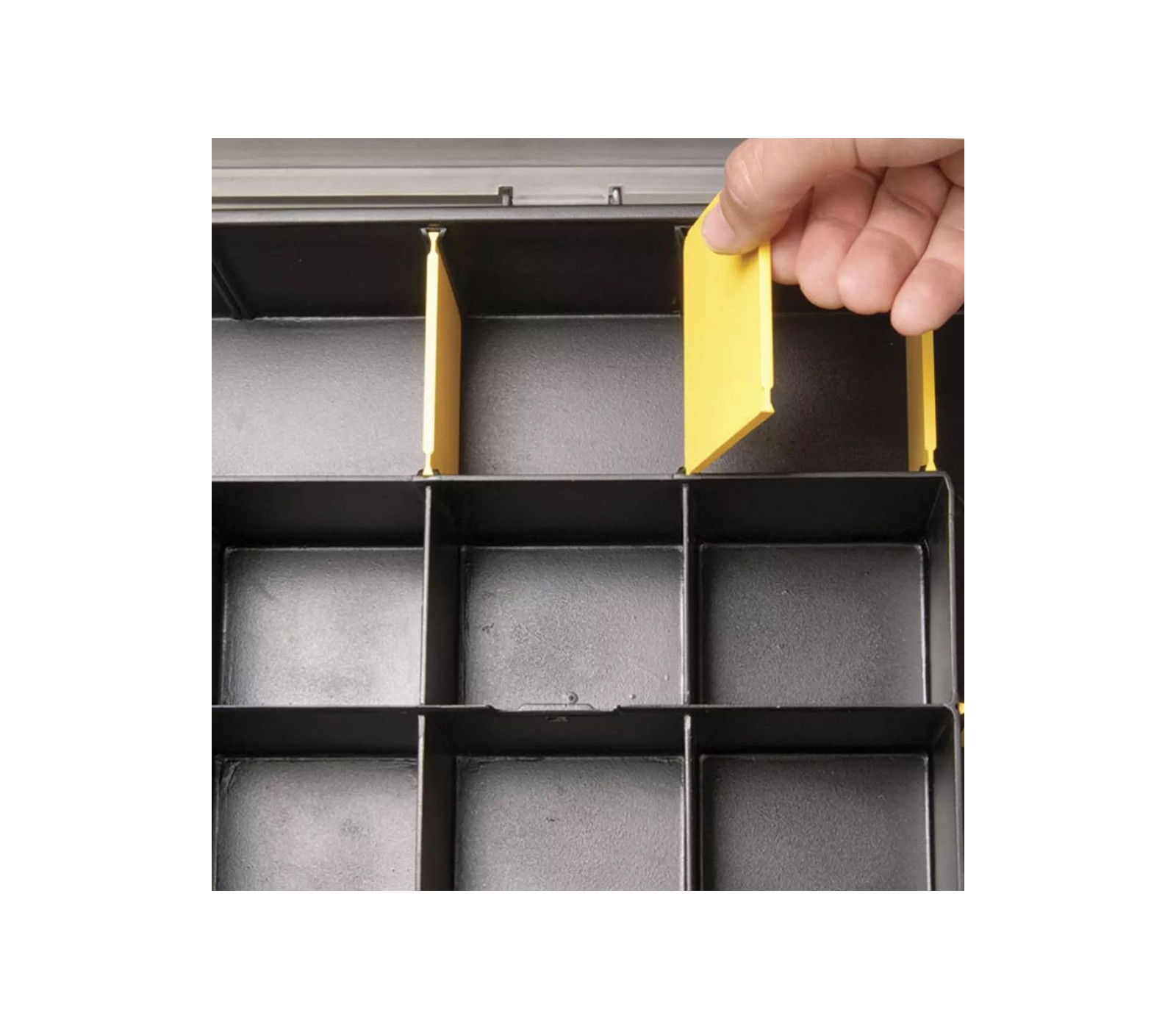 Stanley įrankių dėžė Organizer SortMaster yra praktiška ir patogi priemonė, skirta organizuoti ir laikyti įvairius įrankius bei smulkius daiktus. Ji pasižymi 17 skyrių, kurie leidžia lengvai rasti reikiamus įrankius ir juos efektyviai susisteminti.