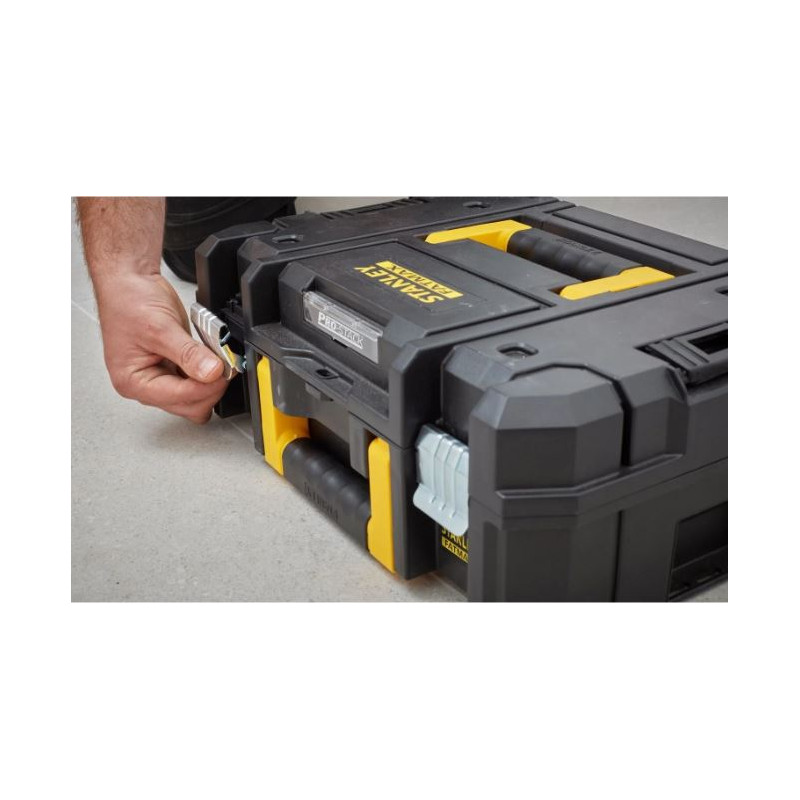 The new generation Dewalt Toughsystem 2.0 transport box. Features and Benefits: - Interconnects with each other and with the old generation TOUGHSYSTEM boxes and trolleys - Wider and stronger handles Automatic connection of boxes - Increased depth compared to old generation 20% increase in internal volume - Easy one-handed locking IP65 - Waterseal protection against water and dust - Volume 56 L - Max Load 50 kg - Box dimensions 554 x 371 x 400
