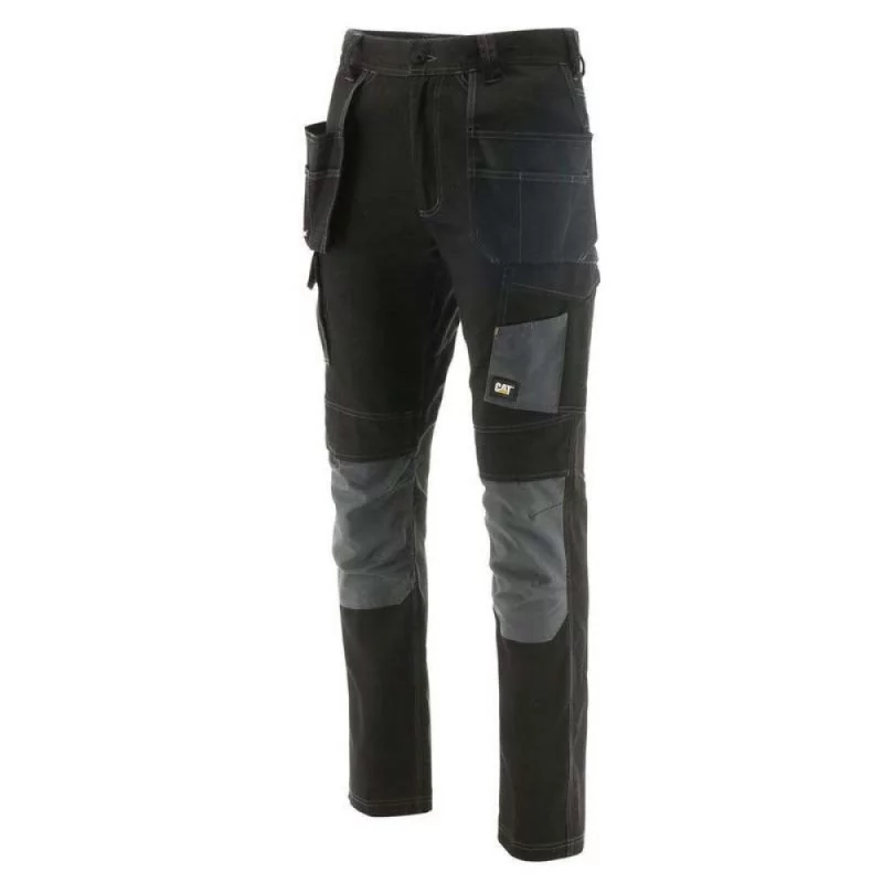 Vyriškos darbo kelnės CAT Essentials black 34/32 pasižymi CONDURA audiniu ant kelių, kuris padeda pailginti kelnių tarnavimo laiką. Jos yra funkcionalios ir patogiai priglundančios, todėl tinka įvairioms darbo sąlygoms.