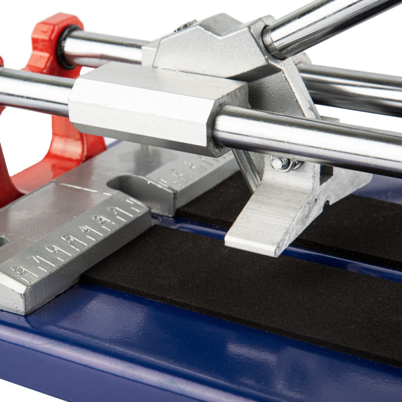 Šios plytelių pjovimo staklės yra patogios naudoti ir užtikrina stabilumą pjaunant plyteles. Jos turi neslystantį paviršių, kuris leidžia plytelėms likti vietoje, ir guma padengtą rankeną, kuri pagerina naudojimo komfortą. Nerūdijančio plieno bėgiai taip pat prisideda prie ilgaamžiškumo.