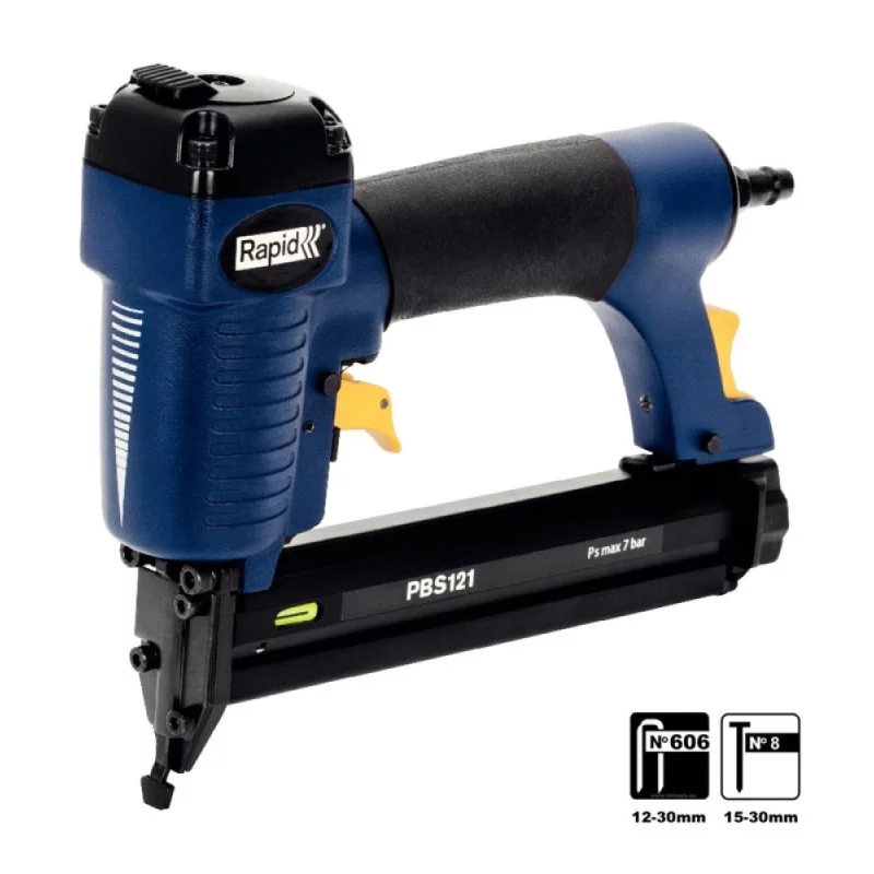 „Pneumatinis kabiamušis „Rapid" PBS121“ yra patikimas ir efektyvus įrankis, skirtas kabėms ir vinims montuoti. Naudodamas Nr. 606 kabes ir Nr. 8 vinukus, jis puikiai tinka įvairiems tvirtinimo darbams, pavyzdžiui, medinių konstrukcijų gamybai ar baldų remontui.