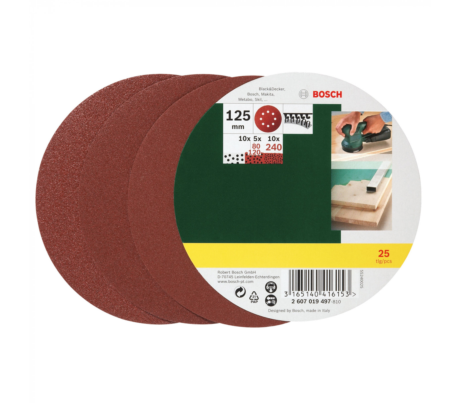 Bosch ekscentrinio šlifavimo popierių rinkinys, 125 mm, 80,120,240 grūdėtumas, 25 vnt.