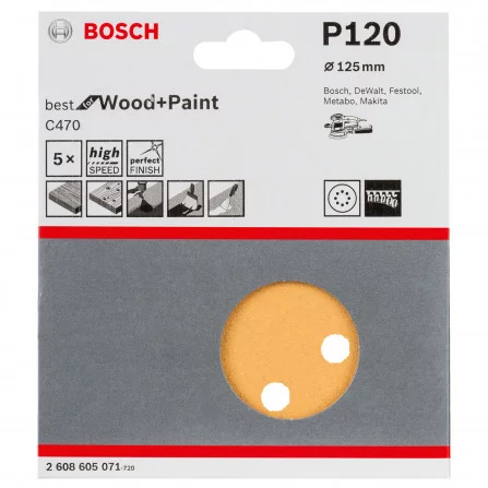 Bosch ekscentrinio šlifavimo popierius C470, 125 mm, 120 grūdėtumas, 5 vnt. yra populiarus pasirinkimas tiek profesionalams, tiek mėgėjams. Vartotojai vertina jo efektyvumą, patvarumą ir kokybę, leidžiančius pasiekti puikių rezultatų šlifavimo procese.
