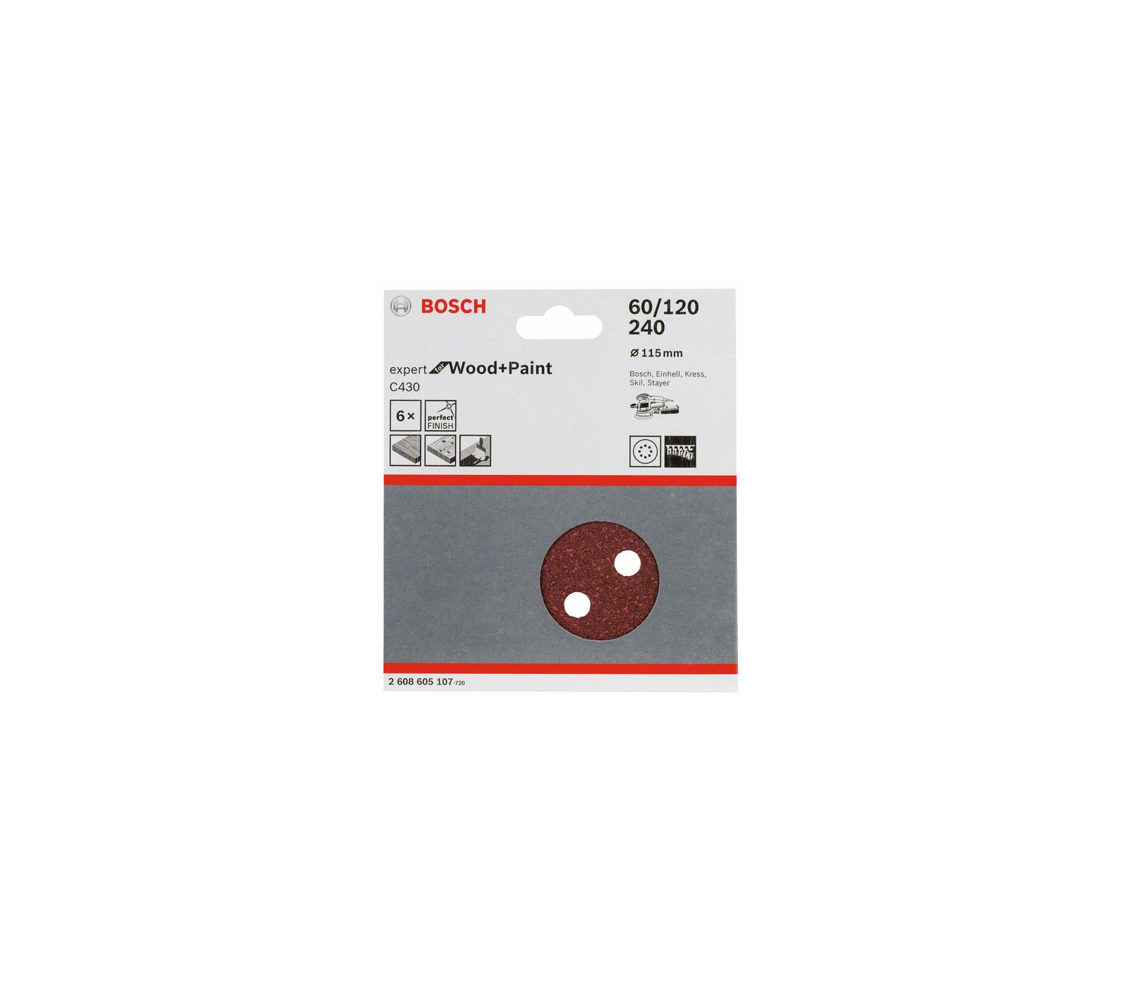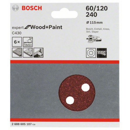Bosch šlifavimo popierių rinkinys C430, 115 mm, 60,120,240 grūdėtumas, 5 vnt.