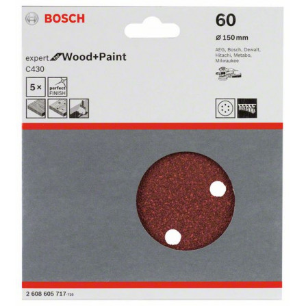 Bosch šlifavimo popierius C430, 150 mm, 60 grūdėtumas, 5 vnt.