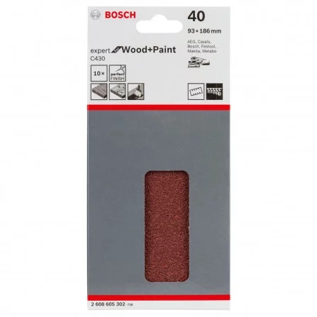 Bosch šlifavimo popierius C430, 93 x 186 mm, 40 grūdėtumas, 10 vnt.