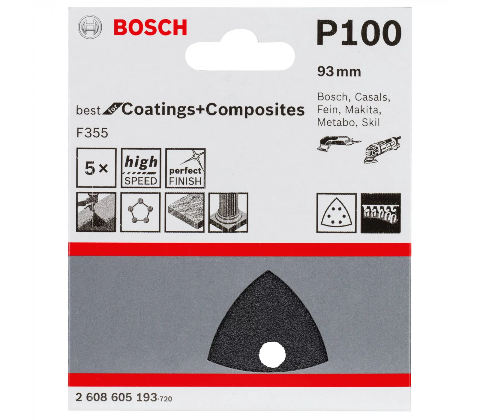 Bosch šlifavimo popierius F355, 93 mm, 100 grūdėtumas, 5 vnt.
