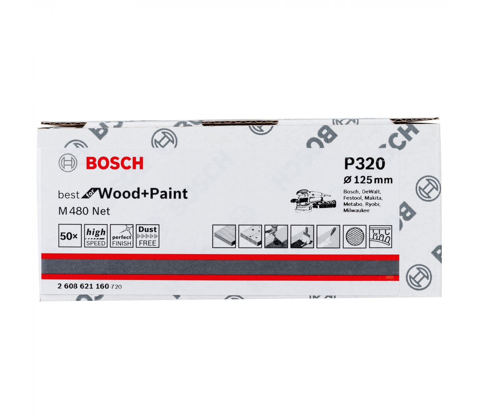 Bosch šlifavimo popierius M480 Net, 125 mm, 320 grūdėtumas, 50 vnt.