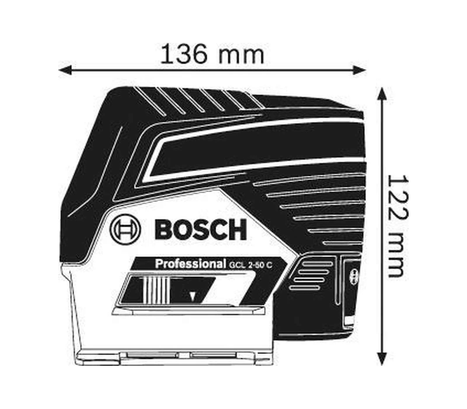 Akumuliatorinio raudono lazerinio nivelyro Bosch GCL 2-50 C rinkinys, 12 V, 1 x 2,0 Ah, įkroviklis, lagaminas + priedai