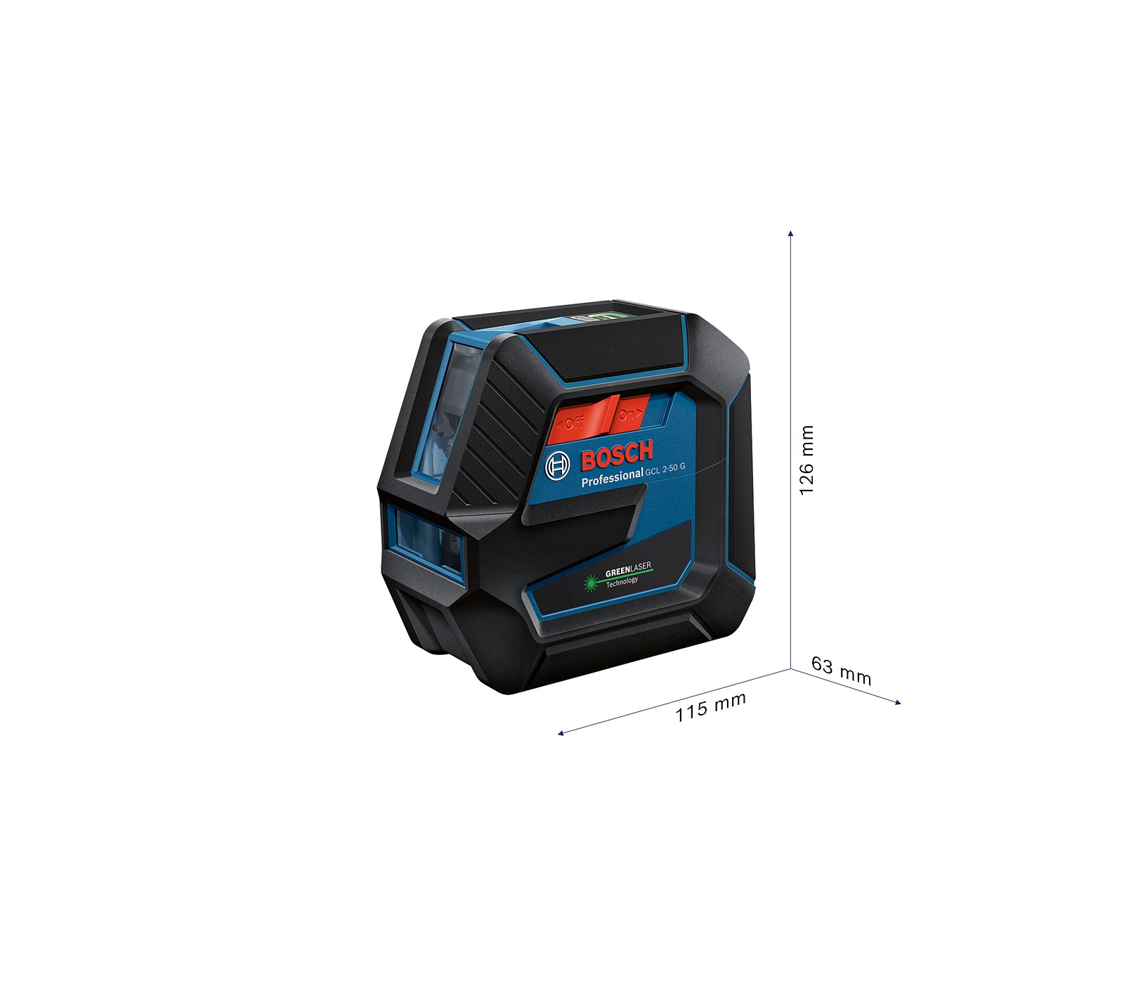 Bosch GCL 2-50 G – tai akumuliatorinis lazerinis nivelyras su ryškiomis žaliosiomis linijomis ir svambalo taškais. Tvirtas, su IP64 apsauga nuo dulkių ir vandens, ir gumuotu korpusu, puikiai tinka darbui sunkiomis sąlygomis. Paprastas valdymas vienu mygtuku. Naudokite lentynų montavimui, karkasų statybai ar plytelių klojimui. Veikia iki 15 m, su imtuvu – iki 50 m. Saviguosa per 4 s. Maitinamas 4 AA baterijomis, svoris – 0,58 kg.