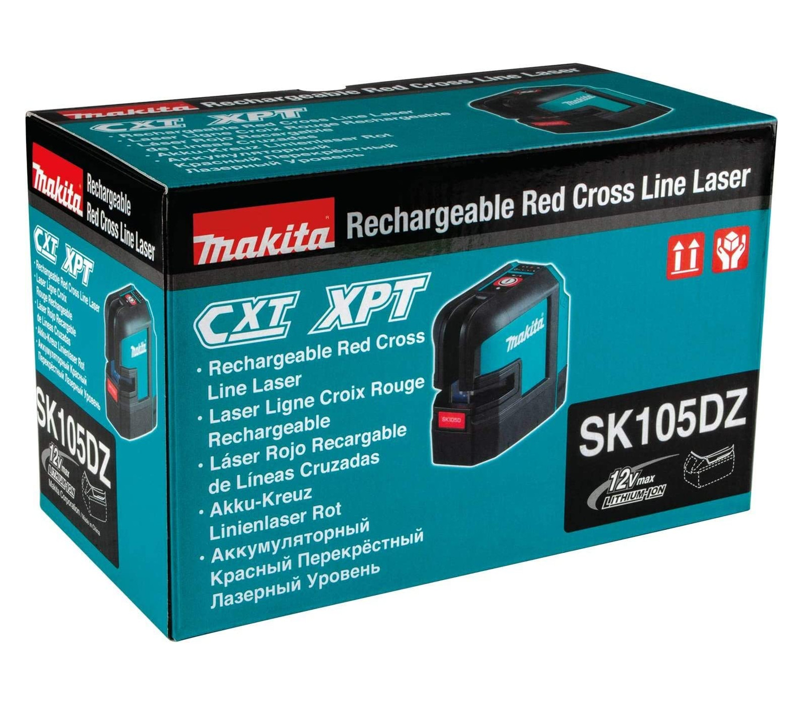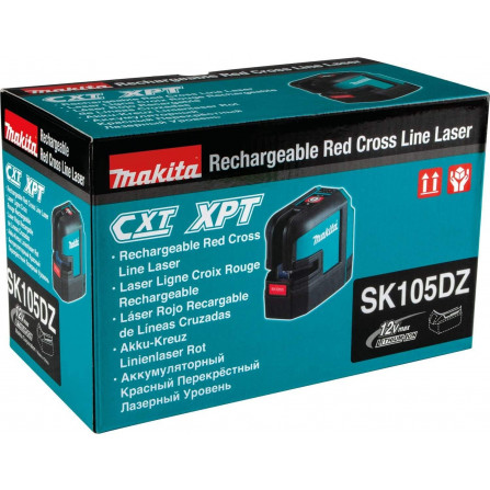 Makita SK105DZ 12 V akumuliatorinis lazerinis nivelyras su kryžminio spindulio funkcija užtikrina tikslų ir greitą niveliavimo darbų atlikimą.