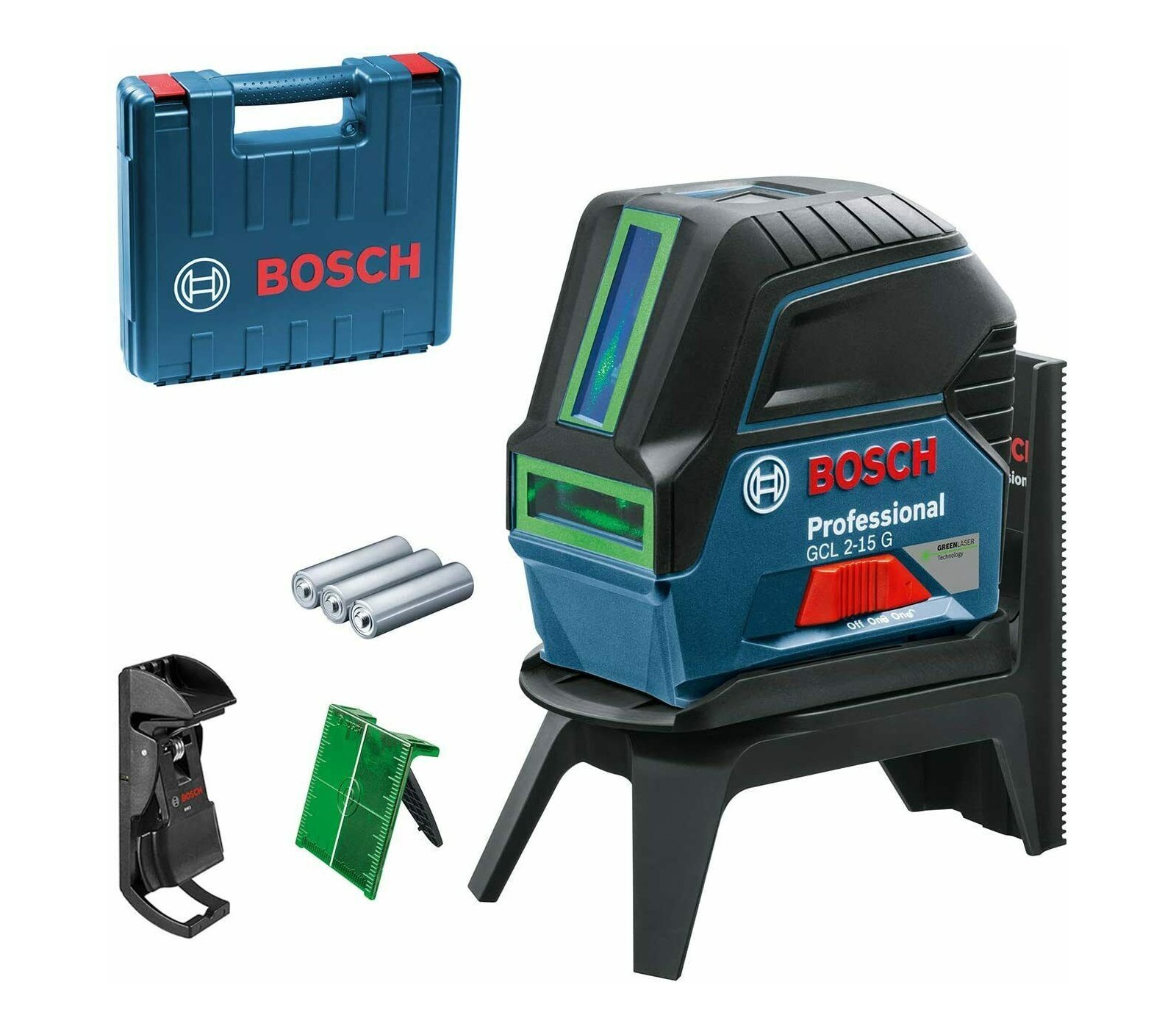 Akumuliatorinis žalias lazerinis nivelyras GCL 2-15 G (0601066J00), lagaminas + priedai