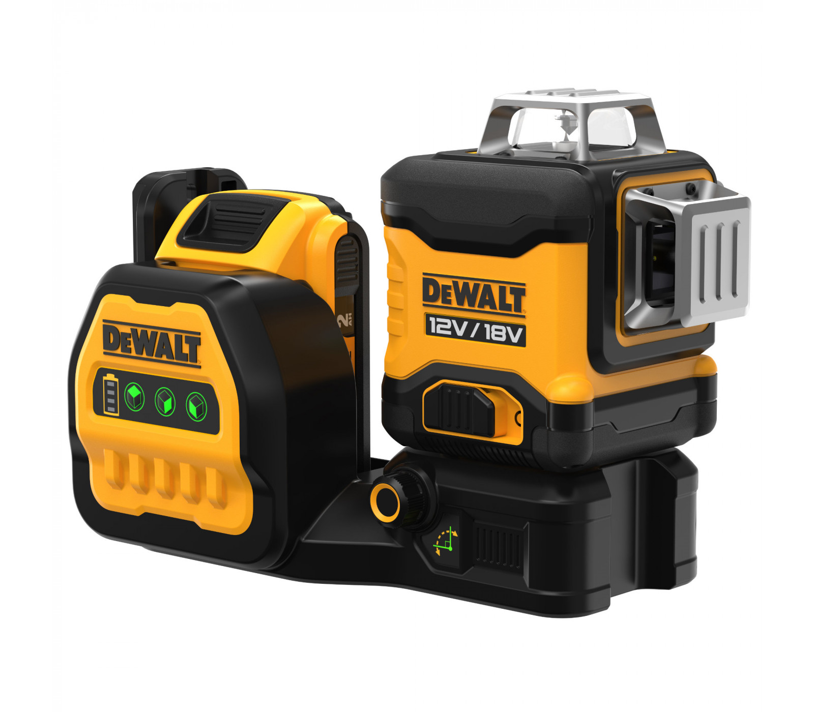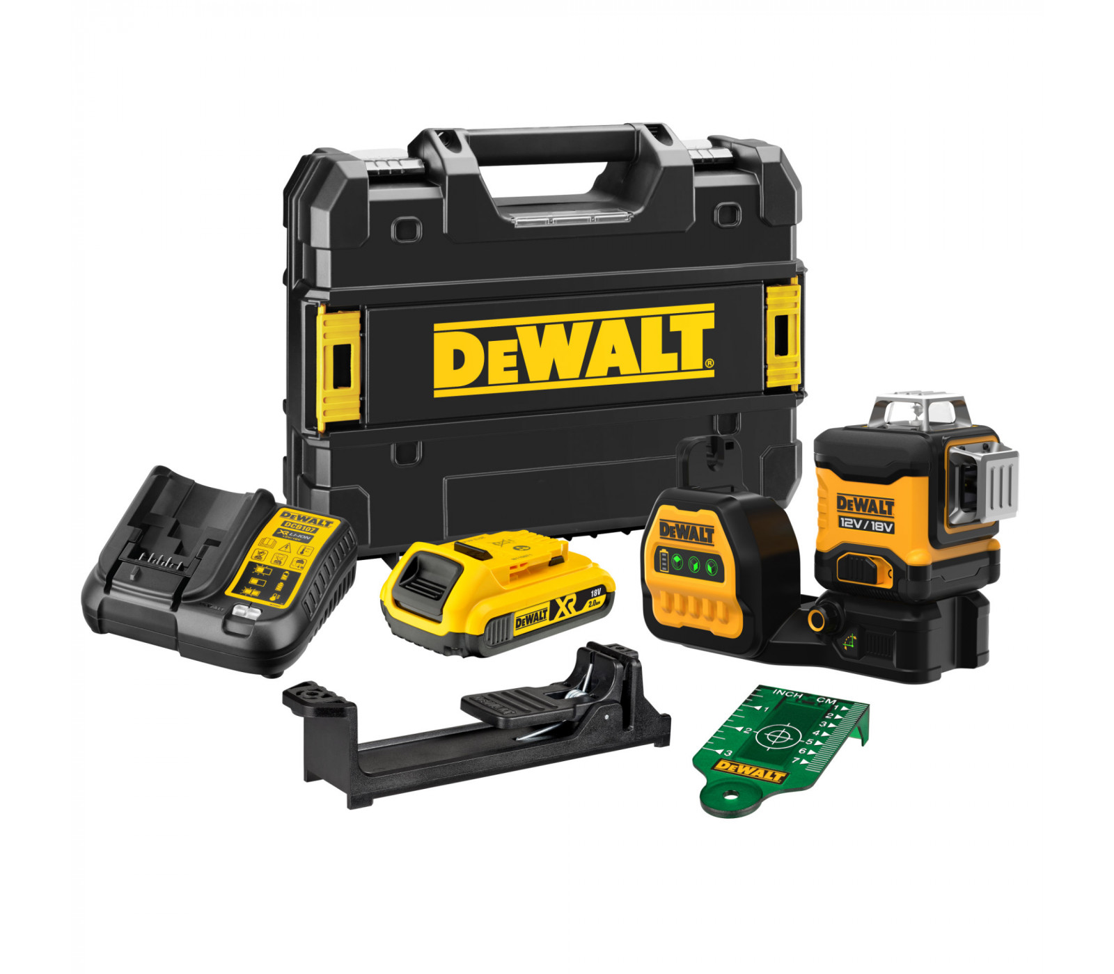 Dewalt akumuliatorinio žalio kryžminio lazerinio nivelyro rinkinys DCE089D1G18, 18 V, 1x2,0Ah, įkroviklis + lagaminas