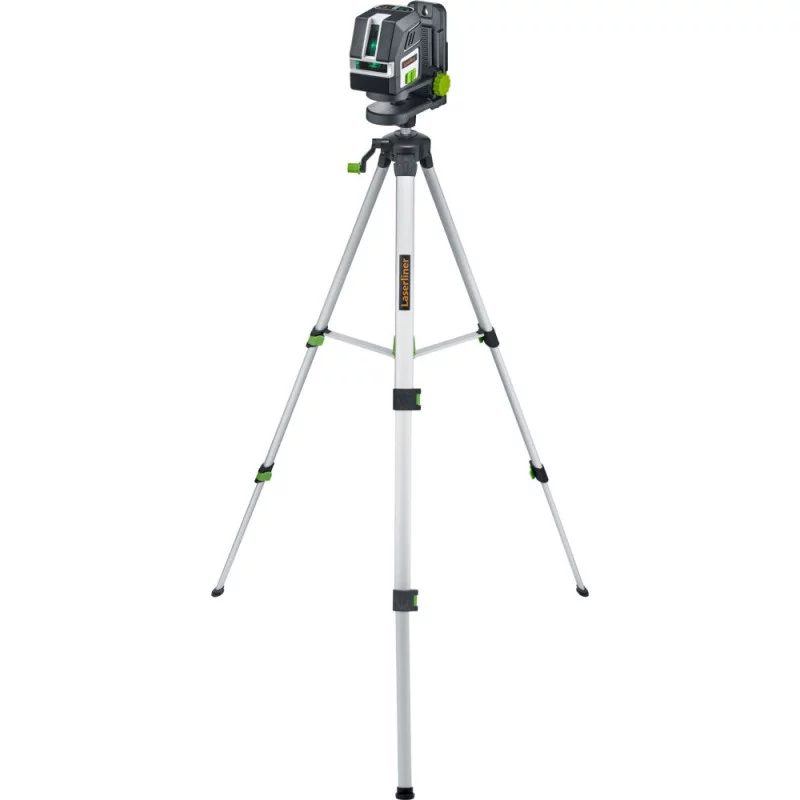 Lazeris: • Savaime susikalibruoja iki 3° nuokrypio. • Darbui viduje iki 30 m ir darbui lauke iki 50 m su detektoriumi. • 1 horizontali ir 2 vertikalios linijos susikertančios 90° laipsnių kampu. • Tikslumas: 0,2 mm/m. Forma ir konstrukcija: • Kompaktiškas. • Garsinis signalas, kai matuoklis pakrypsta iki tokio lygio, kad pats nebeišsilygina. • Reguliuojamos kojelės, kurių dėka galima nustatyti kampą ir aukštį. • Komplekte adapteris sriegiui 16 mm į 6 mm ir stovas. • Veikia su 3 vnt. AA tipo elementais (elementų komplekte nėra). • Smūgiams atsparus guminis apvalkalas. Įrankio panaudojimas: • Plytelių, spintelių, grindjuosčių lyginimo darbuose. • Durų ir langų montavimo darbuose. • Kabinamų lubų montavimo darbuose.