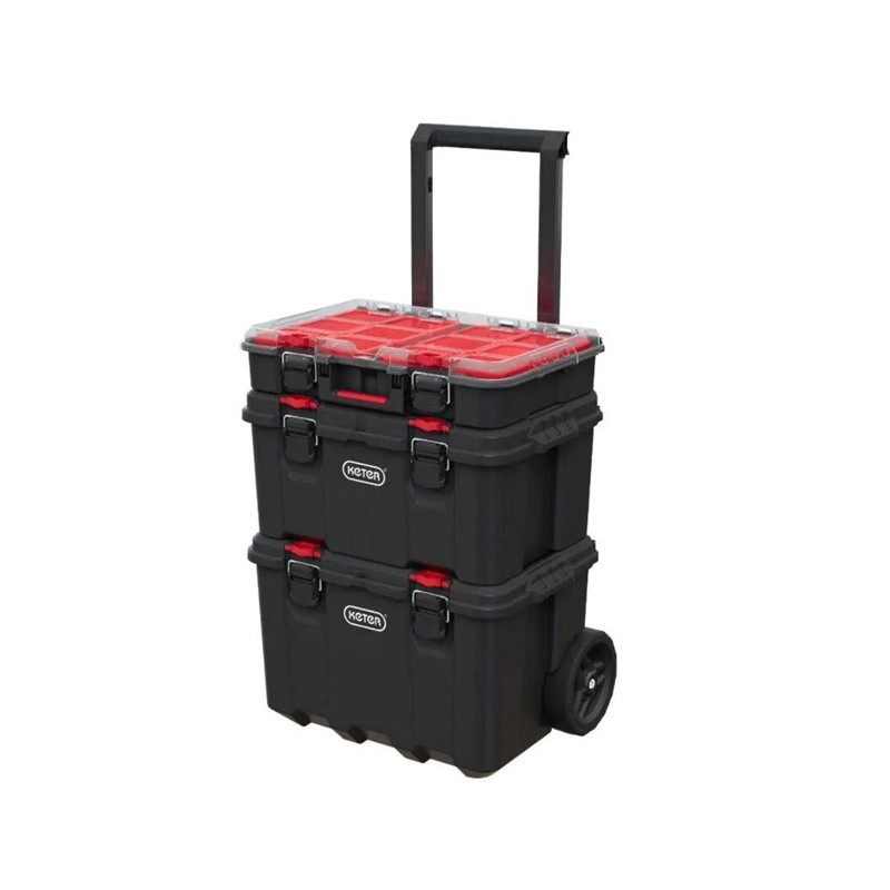 Dėžė Keter STACK N ROLL, juoda/raudona (251493)