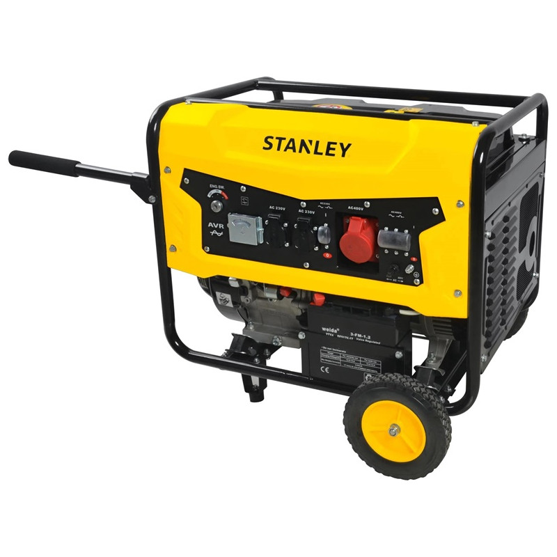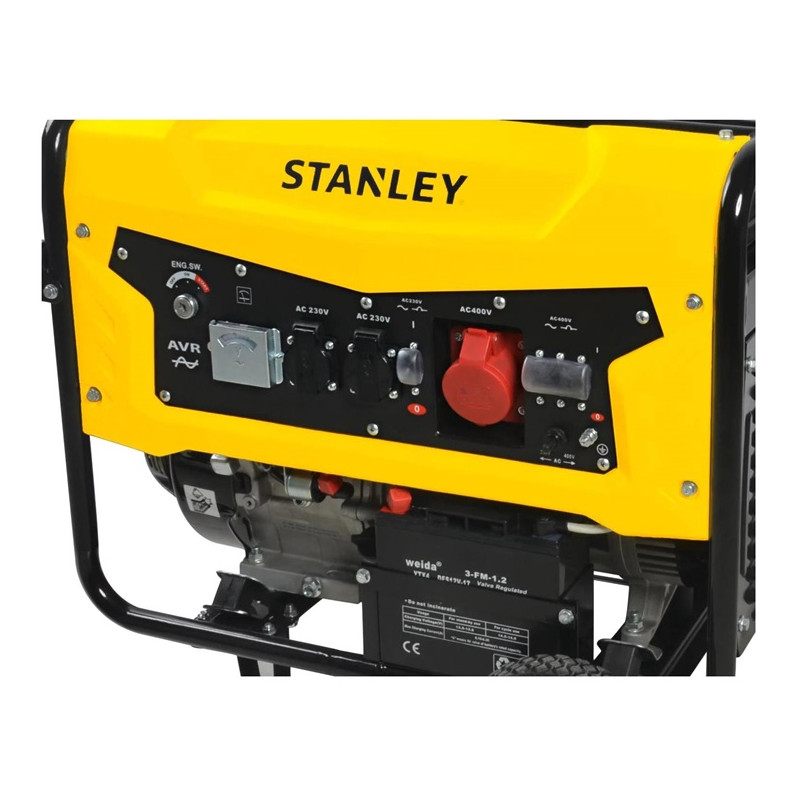 Generatorius Stanley SG 7500 yra galingas ir patikimas įrenginys, siūlantis 7000 W nominalią galią ir 7500 W maksimaliai. Jis veikia benzinu, turi 25 litrų kuro baką, kuris užtikrina ilgesnį darbo laiką. Su elektriniu starteriu ir triukšmo lygiu 97 dB, generatorius tinkamas įvairiems poreikiams, ypač lauko renginiams ar tiekimo šaltiniams. Nepaisant šiek tiek didesnio triukšmo, jis yra patogus transportuoti dėl ratukų ir rankenos.