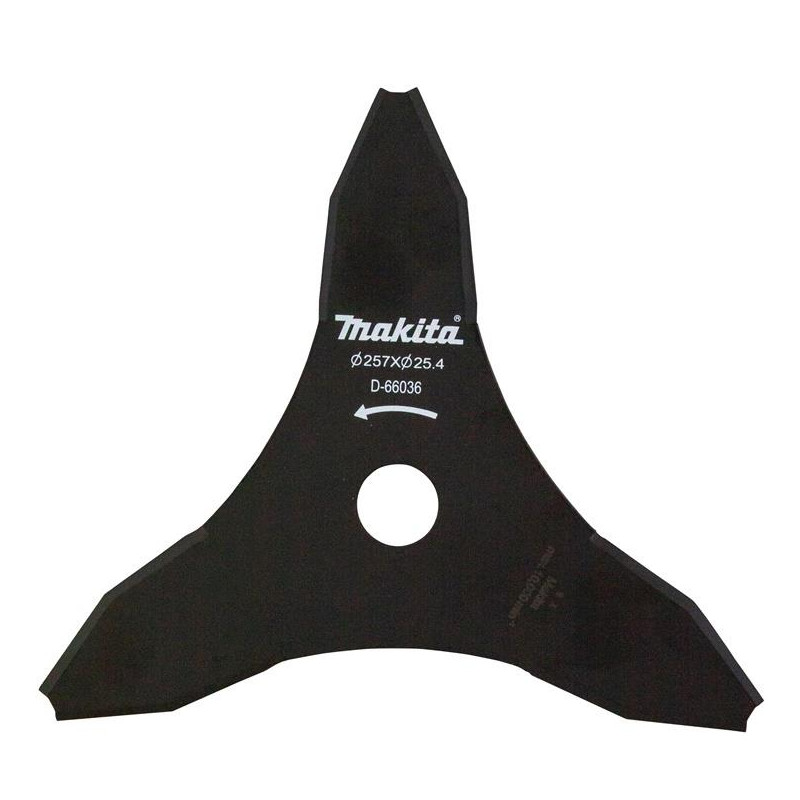 Žoliapjovės priedų tipas- Pjovimo peilis. Prekės ženklas- Makita. Modelis- 3-tooth brush cutter blade 255mm. Artikulas- D-66036. Ilgis- 25.7 cm. Plotis- 25.7 cm. Skersmuo- 257 mm. Medžiaga- Metalų lydinys. Darbinis plotis- 25.7 cm.
