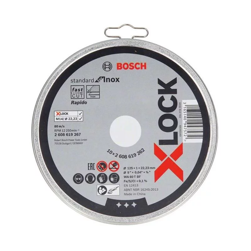 Šie Bosch pjovimo diskai Inox yra iki 125 mm skersmens ir 1 mm storio, skirti naudojimui su X-LOCK sistema. Jie skirti greitam ir efektyviam pjovimui, o taip pat pasižymi dideliu sūkių dažniu iki 12250 rpm, kas užtikrina nepriekaištingus rezultatus. Diskai yra itin patvarūs ir elastingi, todėl puikiai tinka profesionaliam naudojimui.