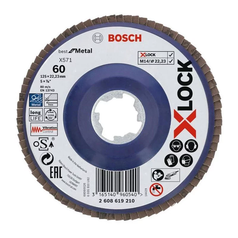 Žiedlapinis šlifavimo diskas BOSCH X-LOCK 125 mm, 60
