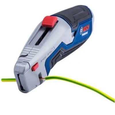 • Labai tvirtas metalinis, gumuotas korpusas • Dėtuvė geležtėms • Automatinis geležčių keitimas, su papildomu geležtės stabilumo varžtu.