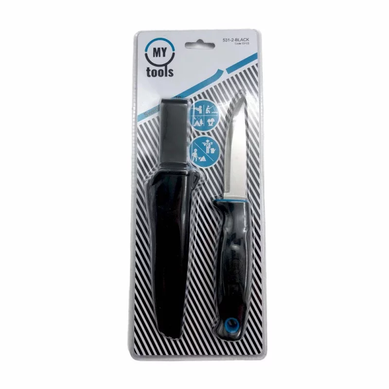 „MY TOOLS" peilis yra pagamintas iš tvirto nerūdijančio plieno ir siūlo patogią gumuotą rankeną, kuri užtikrina tvirtą suėmimą. Be to, jis komplektuojamas su dėtuve, leidžiančia patogiai segti ant diržo. Su 100 mm ilgio geležte ir 225 mm bendro ilgio, šis peilis puikiai tinka įvairiems darbams.