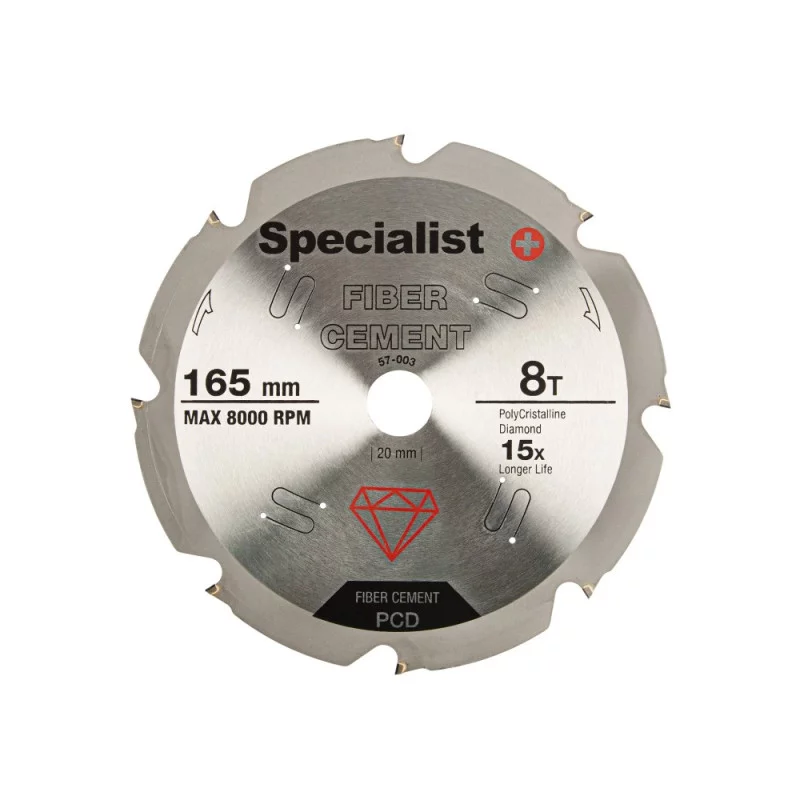 Privalumai: • Pagamintas iš aukštos kokybės plieno • Dantys iš polikristalinių deimantų kurie yra 15 kartų našesni nei paprasti karbido dantys. • 8 dantų diskas švaresniam, greitesniam ir lengvesniam pjovimui, ilgesnis tarnavimo laikas. Papildoma informacija: • 8 dantys • 160 x 20 mm Įrankis naudojamas: • Pluoštinio cemento plokštėms pjauti • Kitoms panašioms medžiagoms pjauti