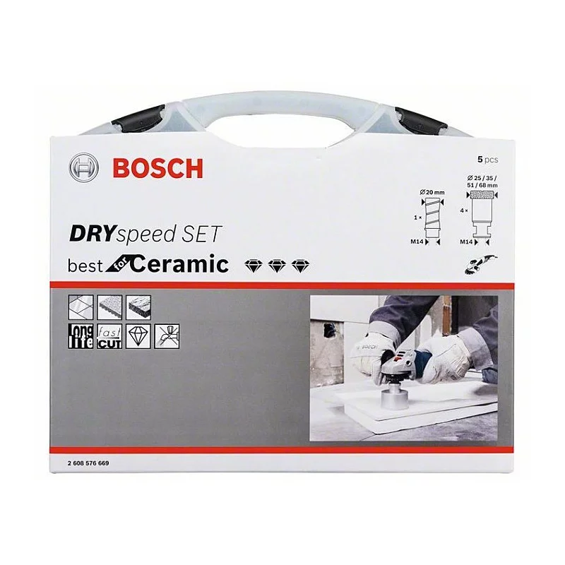 5 dalių deimantinių grąžtų komplekto priedas Bosch 2 608 576 669 (68 mm, 51 mm, 35 mm, 25 mm, 20 mm)