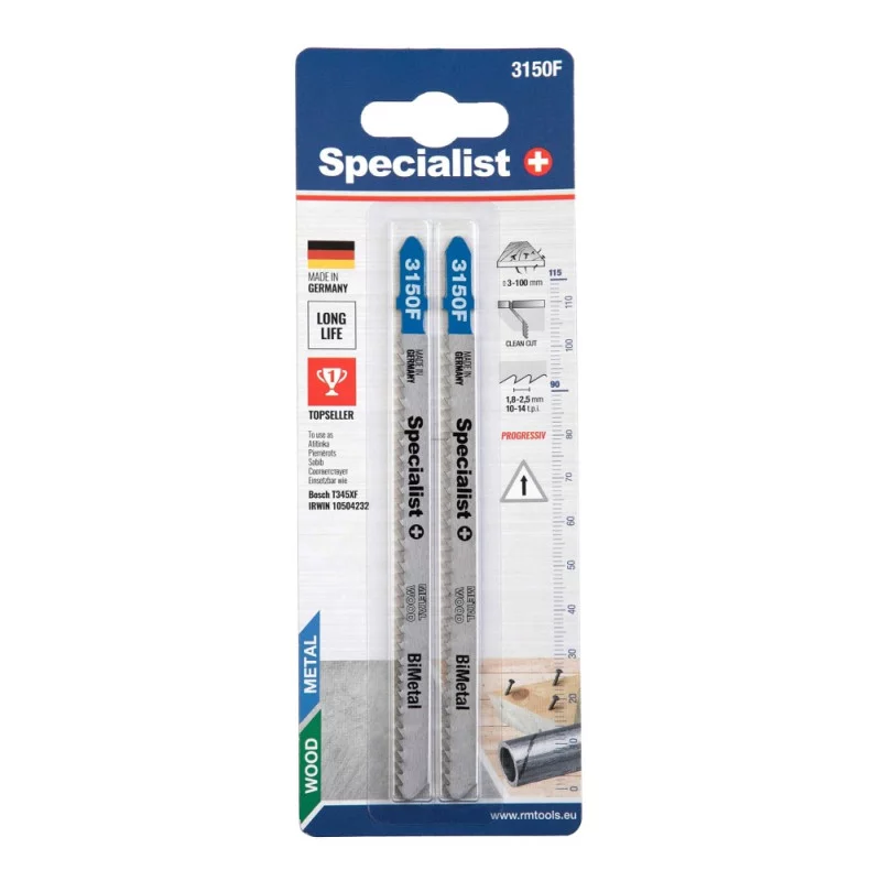 Prekė "Pjūklelis 3150F (T345XF) 135 mm, 2 vnt." pasižymi tvirtais BIMETAL metalo lydinio dantukais, pagamintais su 8 % kobalto, kas užtikrina ilgaamžiškumą ir efektyvumą. Ji puikiai tinka pjauti įvairių rūšių medžiagas, tame tarpe medieną, plieną ir nerūdijantį plieną, o didesni tarpai tarp dantukų leidžia greitesnį pjovimą, mažinant vibracijas.